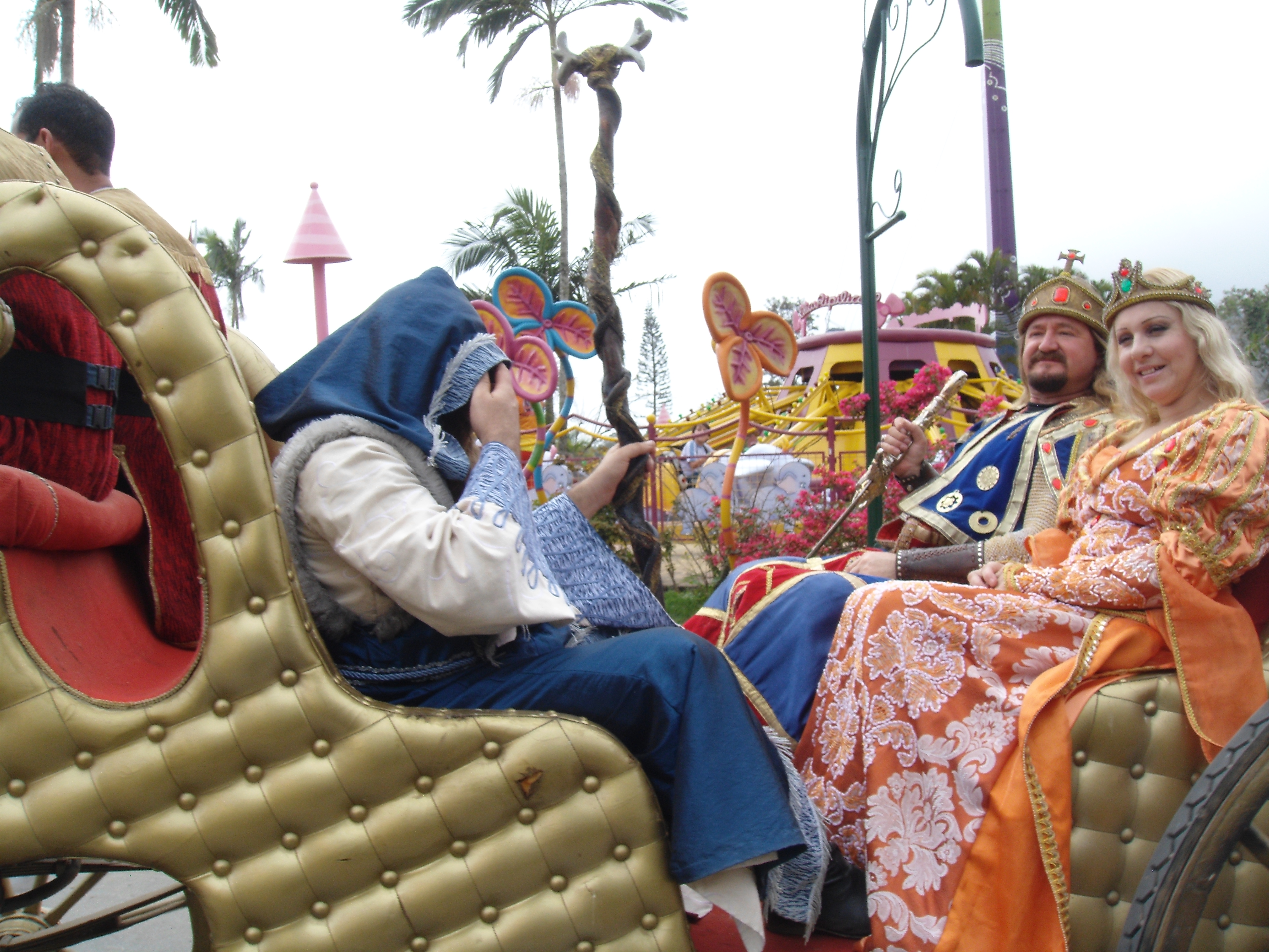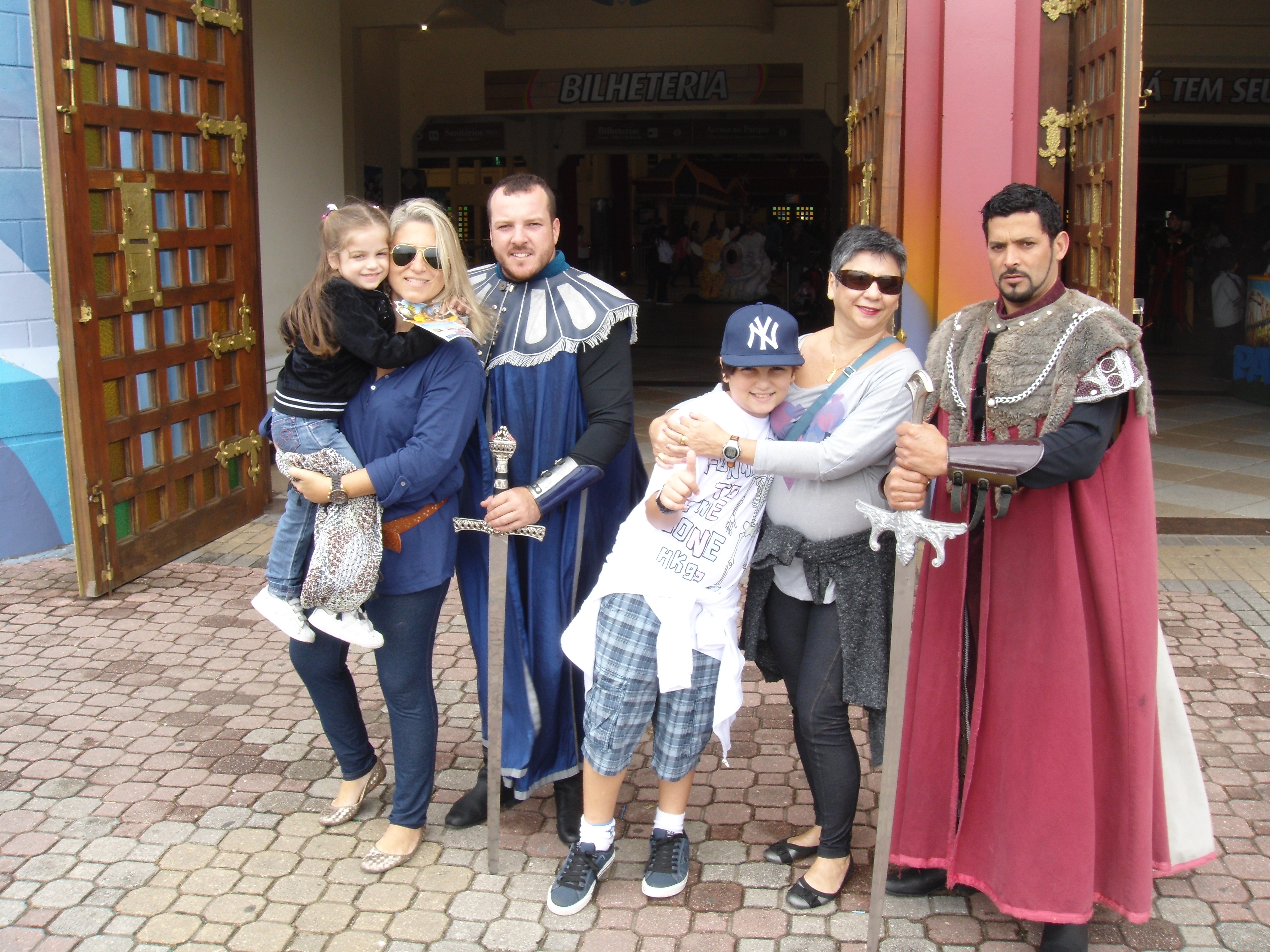 Já saindo do brinquedo, avistamos um cortejo vindo em nossa direção, eram os cavaleiros, o Rei e a Rainha, já anunciando que era chegada a hora do torneio de Excalibur, portanto corremos para a Villa Germânica. O horário do Show é as 12 Hrs.