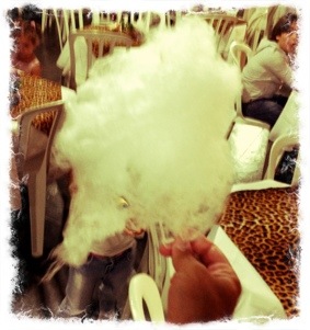 De noite fomos a uma festa de ima coleguinha de colégio da minha filha, tudo lindo e normal a não ser por algo que só identifiquei após algum tempo de analise , sabem o que é isso? Isso mesmo teoricamente um algodão doce! Se fosse a minha festa eu processaria o buffet que chamasse isso de algodão doce, poderia chamar do que quiser, nuvem doce, névoa doce ou até fumaça doce , mas nunca difamar o tradicional algodão doce.