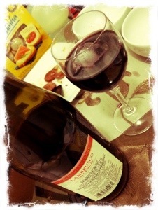 Para beber ,1 espumante tinto italiano, um Lambrusco em promoção e um vinho tinto seco chileno.