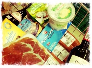 Para comer, iniciamos com uma lingüiça calabresa da Bretanha , maravilhosa , mas diga- se de passagem bem apimentada e uma pasta de ervas finas.