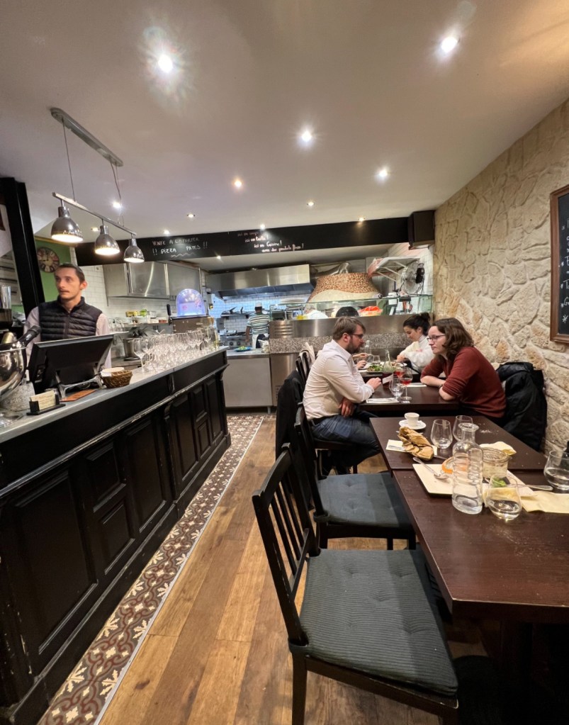 Quem nos recebeu foi o próprio dono, um francês simpático, com sotaque leve e jeito tranquilo. Pensei que fosse italiano — talvez pelo nome, talvez pelo cuidado com os detalhes. Ele nos explicou que estavam abrindo ainda e traduziu em inglês/ italiano o menu do dia escrito na lousa, sugeriu pratos e acompanhou nosso jantar com atenção, sem ser chato.