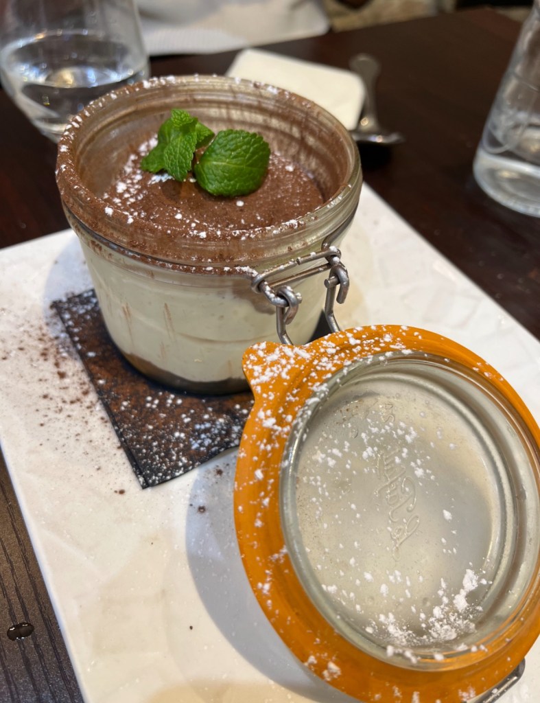 Para encerrar, veio o tiramisu — leve, fresco, bem montado, num pote . Sem exageros( mais ou menos ) Uma sobremesa que respeita o fim da refeição.