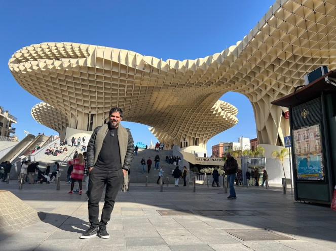 Nossa última parada foi nas Setas de Sevilha, uma das obras mais ousadas e modernas da cidade — e que contrasta, de maneira quase poética, com o centro histórico ao seu redor.