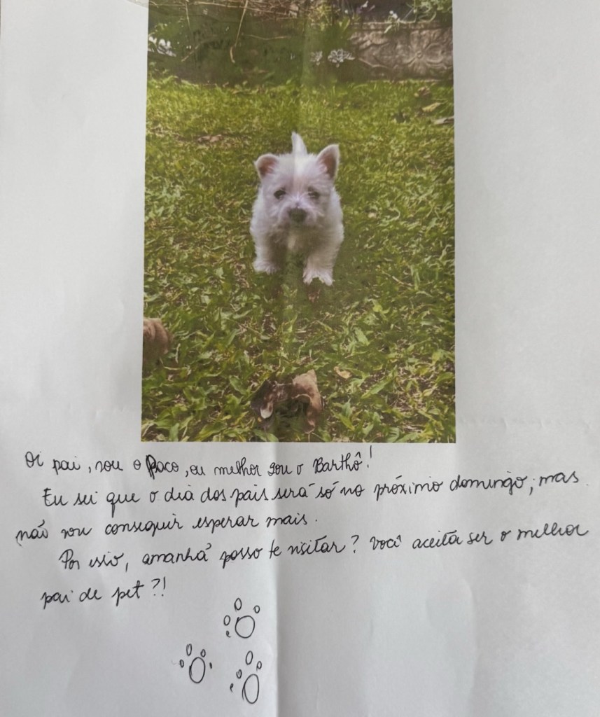 Uma semana antes do Dia dos Pais, notei que algo estava fora do normal. Meu filho, que durante a semana normalmente estava na faculdade, aparecia em casa com frequência. Minha filha cochichava com minha esposa, e as duas evitavam me contar qualquer detalhe. E a maior “defensora” da ideia de não ter mais cachorro, justamente minha esposa, estava negando demais que algo aconteceria. Experiência de vida me dizia: tem coisa aí.