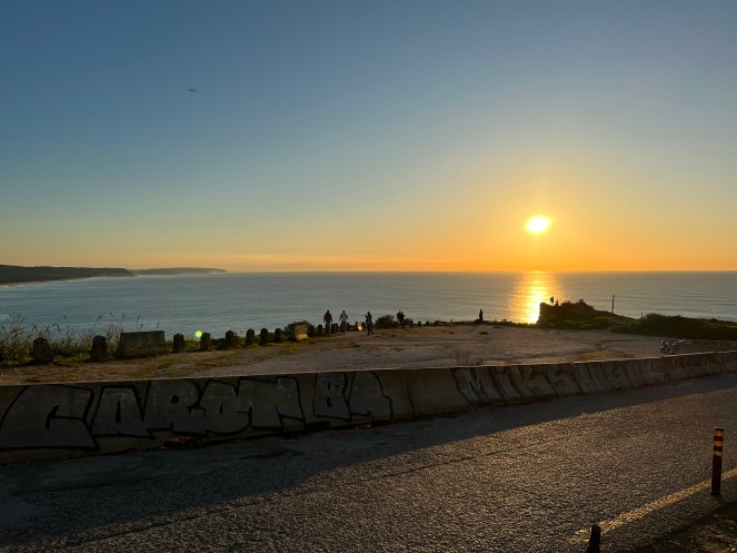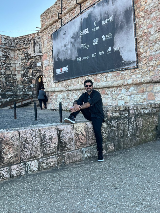 Nós fomos a Nazaré com amigos, estacionamos no alto do Sítio e descemos até o Forte de São Miguel Arcanjo para ver as ondas. Na época estava acontecendo um campeonato, e a energia era contagiante. O forte, além da vista impressionante, abriga um museu muito interessante que conta a história das ondas gigantes e dos surfistas que as enfrentaram.