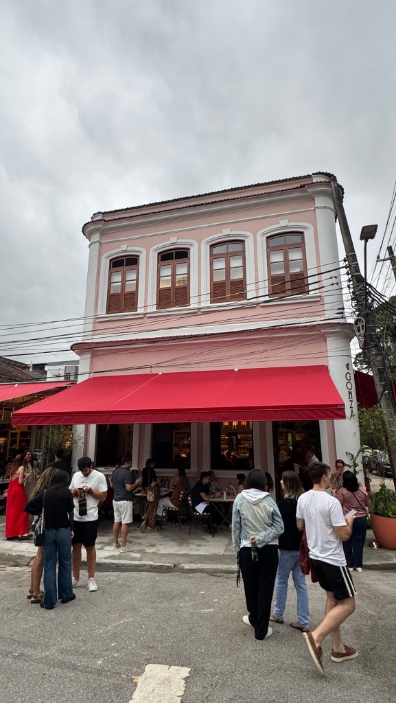 A Rua Pacheco Leão — onde fica Gonza — vem se transformando num polo gastronômico da Zona Sul, com restaurantes ocupando casarões antigos que guardam a alma do bairro. Esse casarão que abriga o Gonza, inclusive, era um imóvel antigo que passou por restauros para destacar o caráter original do lugar. Antigamente, a região tinha casas modestas e era mais residencial, mas hoje vive esse processo de reinterpretação, cenários de restaurante e gastronomia ganhando vida nas ruas estreitas do Horto.